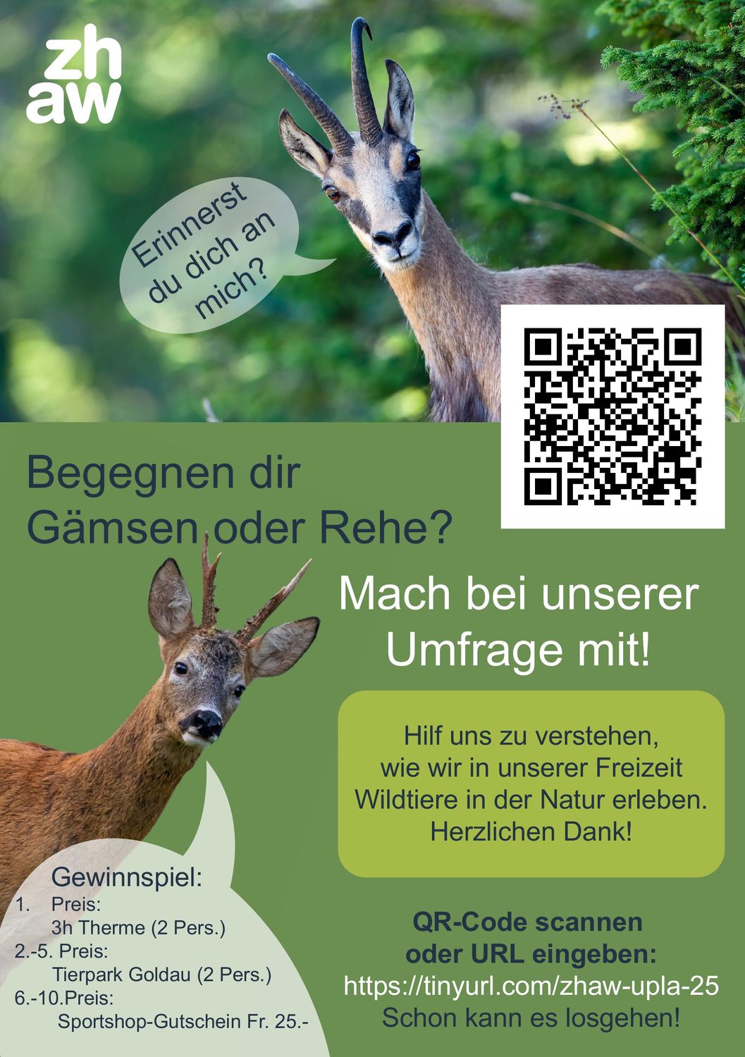 Für eine Umfrage im Rahmen eines Forschungsprojekts der ZHAW wurde der SAC Aarau um Mithilfe gebeten. Es sollen von möglichst vielen Teilnehmende aus unterschiedlichen Freizeitsportaktivitäten im Kanton Aargau Daten gesammelt werden, um mehr über deren Begegnungen mit Gämsen und Rehen zu erfahren. Gerne darf der Link auch mit anderen Personen geteilt werden. Wer an der Umfrage teilnimmt kann ausserdem etwas gewinnen.
