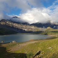 Am Freitag ging es nach einem Startkaffee im kleinen, hübschen Weiler Mex die 1100 Höhenmeter hinauf zum Col du Jorat, zuerst durch Wald und an Wasserfällen vorbei, dann über Alpweiden mit ersten Blicken auf die Tête Motte, den östlichsten Gipfel der Dents du Midi. Vom Pass aus erklommen wir noch die gut 100 Höhenmeter bis zum Vorgipfel des Dent du Salentin. Von dort genossen wir die Aussicht mit einem atemberaubenden Wolkenspiel, teils unter uns, teils über uns. Dann ging es hinab zu unserer Unterkunft, der Auberge de Salanfe am Lac de Salanfe.