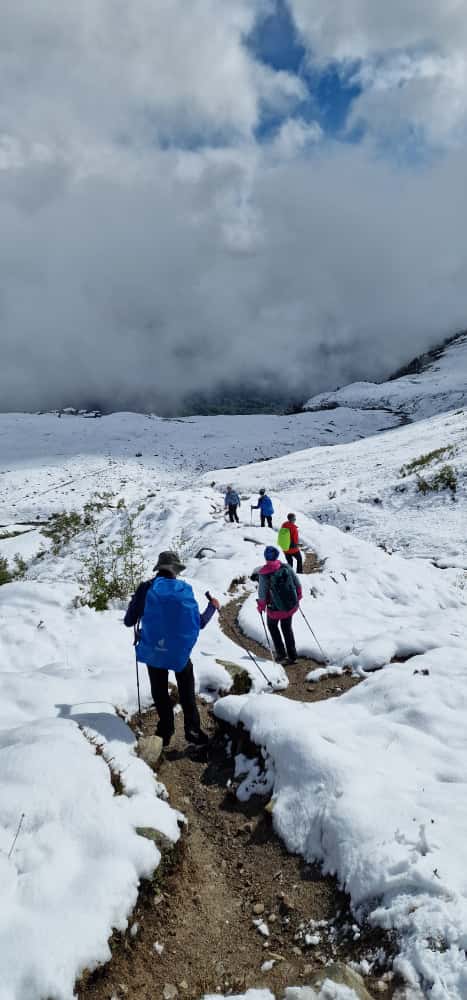 Der Aufstieg im Wald nach Nessel, teilweise entlang des stürzenden Baches Nessjeri, verlief reibungslos und je mehr wir uns dem Weiler näherten, kamen wir in den Schnee. Kurz nach Nessel und nach einer weiteren Information über die kulturelle Bedeutung der Suonen, liefen wir entlang der letzten Wasserleite, der Nessjeri und erreichten im 10 cm tiefenSchnee, aber inzwischen bei schönstem Wetter, die Belalp. Bei der Rückfahrfahrt mit der Luftseilbahn hatten wir nochmals Zeit, das schöne Panorama auf die verzuckerten Berge zu geniessen.