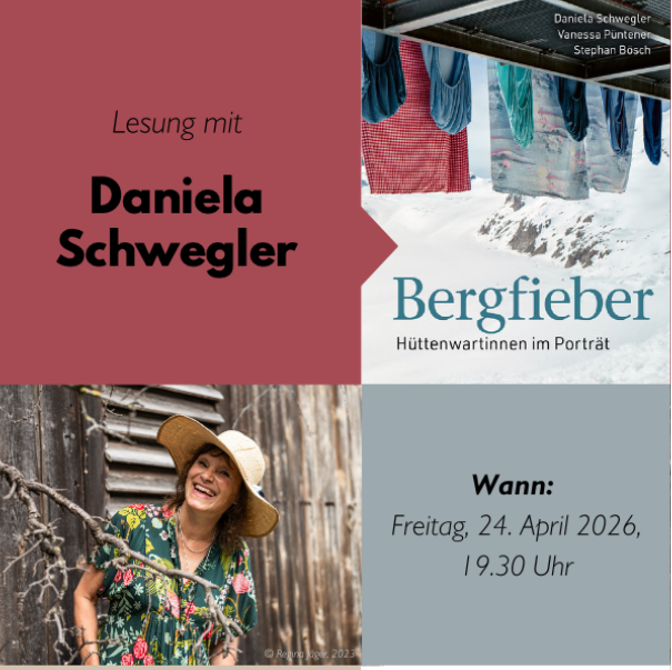 Lesung in der Stadtbibliothek mit Daniela Schwegler. Sie liest aus ihrem Buch «Bergfieber- Hüttenwartinnen im Portrait» vor.
