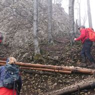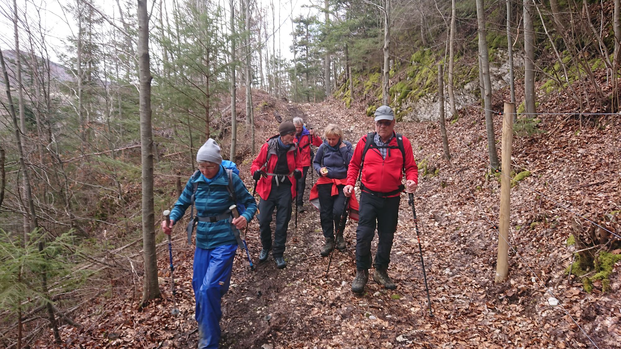 Eine ansehnliche Gruppe traf sich am Sonntag recht früh am Bahnhof Aarau zu Anreise nach Farnern zum Ausgangspunkt der Wanderung über den Chamben zu den Wisentrindern in der Sollmat. Das Wetter war plangemäss regnerisch. Trotzdem waren alle angemeldeten Teilnehmenden mit dabei! Die Umsteigezeit in Oensingen ins Bipperlisi war kurz. So musste die Abfahrt durch uns etwas verzögert werden. Das wurde dann mit einem Rasen zum letzten Umsteigepunkt im schmucken Wiedlisbach quittiert. Von dort brachte uns das Postauto sicher nach Farnern. Von dort stiegen wir durch Wald und Wiesen zur Bättlerchuchi auf, um von da Richtung Westen über den Grat zum Höch-Chrütz zu gelangen. Da war es nur noch einen Katzensprung zum Znünihalt in der Hinteren Schmiedenmatt. Die Wirtin verwöhnte uns mit feinen Nussgipfeln, bevor es weiter über den Chamben zum Mittagshalt beim Niederwiler Stierenberg ging. Leider war die Aussicht vom Gipfel Richtung Alpen bescheiden, obwohl der Nieselregen etwas nachgelassen hatte. Die Schlüsselstelle kurz vor dem Gratausstieg wurde von allen bravourös gemeistert. Nach dem Stierenberg ging es ein Stück weglos über sumpfige Wiesen Richtung Sollmatt. Schon bald betraten wir durch eine massive Umwehrung das weitläufige Wisentgelände. Zu unserem Glück wurden wir von den fünf eindrücklichen Tieren (ein Stier, drei Kühe und ein Jungtier) in der Nähe des Treffpunkts schon erwartet. Das erlaubte uns, tolle Bilder zu schiessen. Der Landwirt des Hofs, der diese Rinder betreut, informierte uns engagiert über das Projekt der Wiederansiedlung der Wisentrinder im Jura (siehe auch https://www.wisent-thal.ch/). Vom Hof war es nur noch eine kurze Wanderung hinab nach Welschenrohr, wo uns die tolle Bäckerei und später das Postauto für die Rückreise nach Hause erwartete.