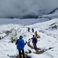 Der Aufstieg im Wald nach Nessel, teilweise entlang des stürzenden Baches Nessjeri, verlief reibungslos und je mehr wir uns dem Weiler näherten, kamen wir in den Schnee. Kurz nach Nessel und nach einer weiteren Information über die kulturelle Bedeutung der Suonen, liefen wir entlang der letzten Wasserleite, der Nessjeri und erreichten im 10 cm tiefenSchnee, aber inzwischen bei schönstem Wetter, die Belalp. Bei der Rückfahrfahrt mit der Luftseilbahn hatten wir nochmals Zeit, das schöne Panorama auf die verzuckerten Berge zu geniessen.