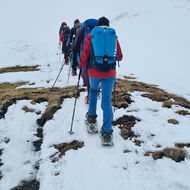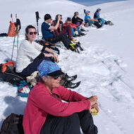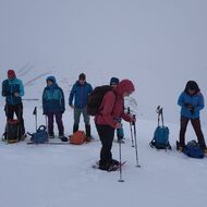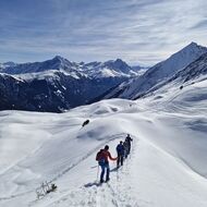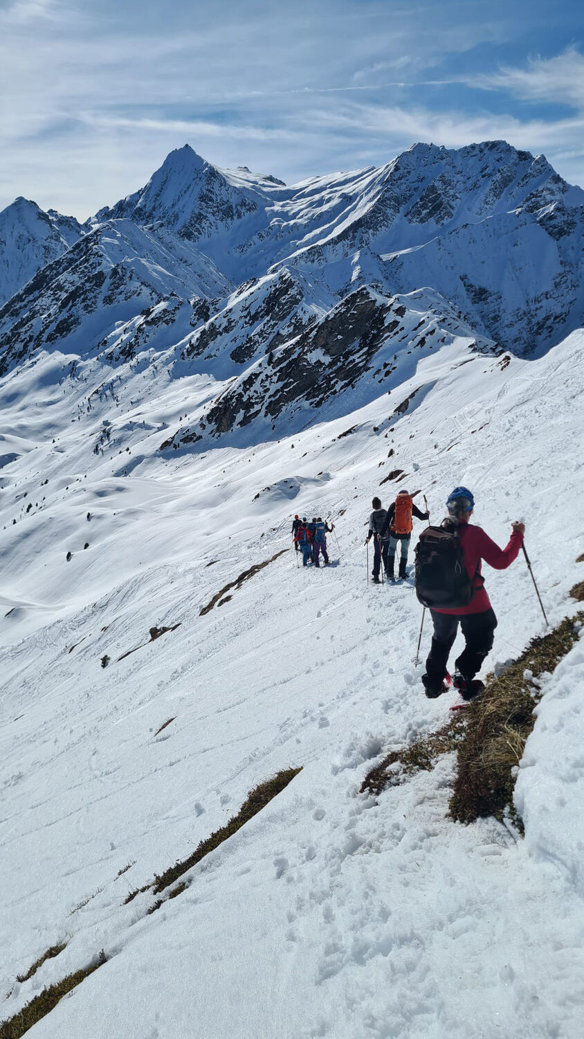 Die Anreise mit ÖV von Aarau ist recht unspektakulär, bis es dann nach Bonaduz losgeht. Der Zug der Rhätischen Bahn windet sich durch die einmalige Rheinschlucht, den wir am Umsteigepunkt in Versam-Safien verlassen. Im gut besetzten Postauto geht es die enge und kurvenreiche Strasse hoch bis zum Eingang ins Safiental. Auch die Fortsetzung bis Tenna ist spannend. Dort machen wir uns bei Sonnenschein zum Schlüechtli auf. Aufgrund des warmen Wetters ist der Schnee weich. Aber es gibt eine gute Trasse hoch zum Stellisee, wo wir unser Mittagessen bei toller Aussicht in die Bündner Alpen geniessen. Weiter geht es noch einmal steil hoch zum Gipfel. Dort ist die Rundumsicht atemberaubend. Nachdem sich alle satt gesehen haben, machen wir uns auf den Rückweg nach Tenna auf, wo wir vor der Weiterreise nach Safien Platz genug Zeit haben, uns ein Zvieri zu gemehmigen und die Kirche zu besichtigen.