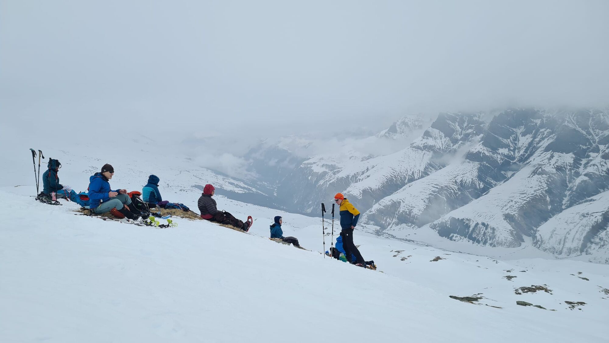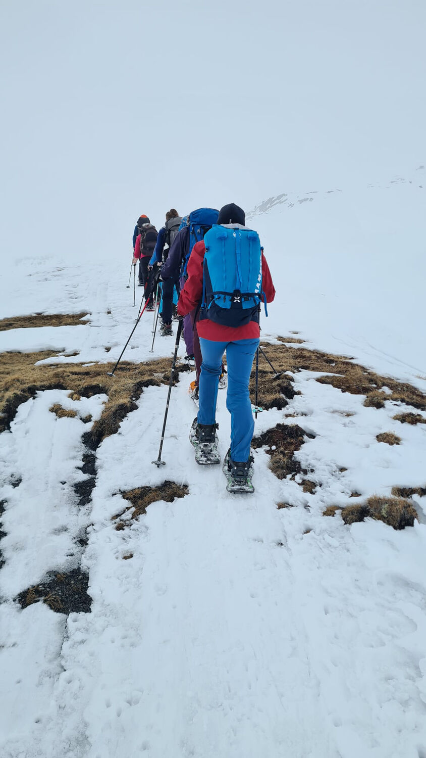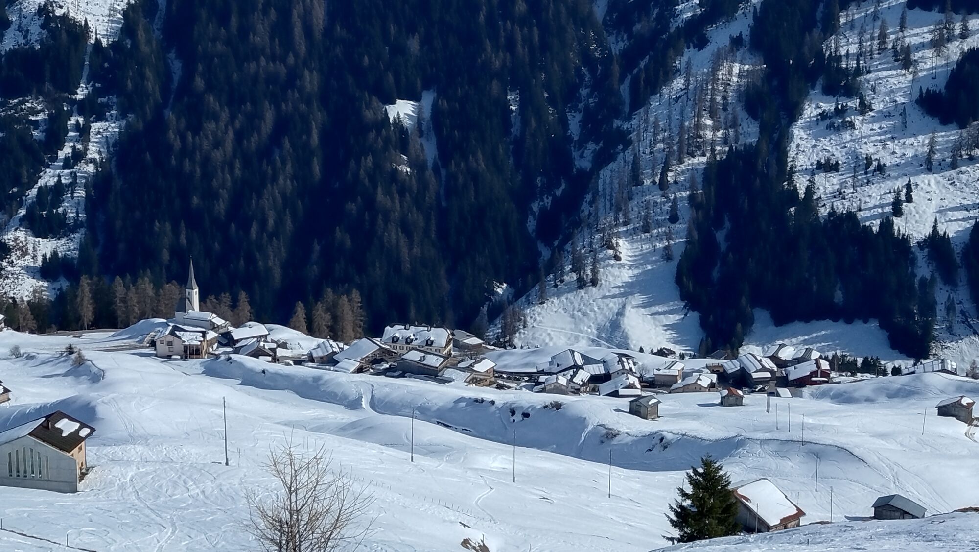 Die Wetterprognose für den Sonntag war nicht mehr so goldig. Aber bei der Fahrt zum Turrahus riss der Himmel ein wenig auf und liess uns einen Blick Richtung Tagesziel erhaschen. Deshalb machten wir uns zuversichtlich Richtung Wissasteihora (Piz Tomül) auf. Unterwegs war dann die Sicht ganz unterschiedlich und der Gipfel verhüllt. Kurz bevor wir den langen Grat erreichten, begann es noch leicht zu schneien. Die Fernsicht war bescheiden und liess uns nicht wirklich runter Richtung Vals blicken. So entschieden wir uns nach dem Mittagessen umzudrehen und den Rückweg ins Tal unter die Schneeschuhe zu nehmen. Das Wetter wurde freundlicher und klarte auf. So konnten wir unsere Einkehrlokal schon von weit oben her sehen. Vor der langen Rückfahrt mit dem Postauto zum Bahnhof blieb genug Zeit, im Turrahus die feine Wähe zu geniessen. Im gut besetzten Zug erreichten wir Aarau zu vernünftiger Zeit.