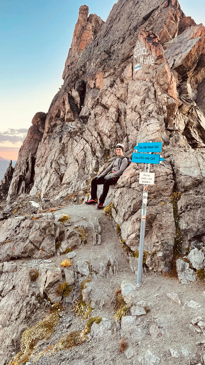 Von unterschiedlichen Orten anreisend nahmen wir in Zürich als komplette Truppe unsere Reise ins Oberengadin auf. Im Zug assen wir bereits unser Zmittag, sodass wir nach der Ankunft in Zuoz gleich mit dem Hüttenzustieg starten konnten. Nach einem zügigen, 4-minütigen Marsch durch das Dorf brauchten einige die erste Verschnaufpause und gönnten sich in der Bäckerei Klarer eine kleine Stärkung. Für den Aufstieg zur Chamanna d’Es-Cha konnten sie diese gut gebrauchen. Leider stimmte der Wetterbericht und so kamen wir von einem kalten Regen durchnässt, dafür in Rekordzeit, in der vor Kurzem erweiterten und sanierten Hütte an. Bei einem wärmenden Getränk gingen wir die Tour durch und bildeten die Seilschaften für den nächsten Tag, bevor sich einige kurz schlafen legten. Nach dem gemütlichen Znacht in der warmen Stube, verzogen wir uns früh ins Bett, denn der folgende Tag sollte früh beginnen.