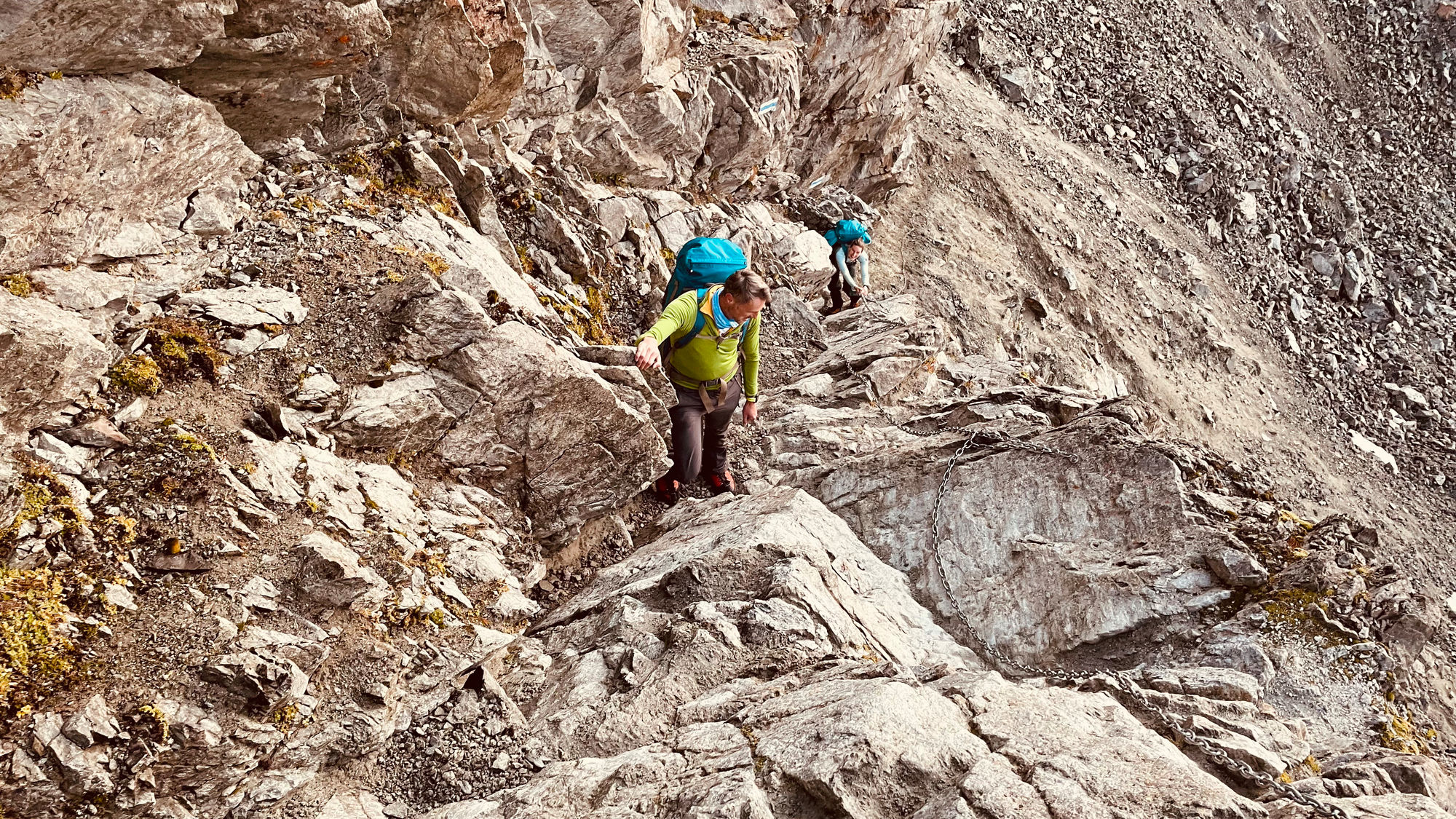 Früh um 4:30 Uhr ging der Wecker los. Nach dem Frühstück machten wir uns an den Anstieg. Etwa eine halbe Stunde liefen wir in der Dunkelheit bergauf, bevor die Sonne langsam aufging. Nachdem wir die Porta d`Es-Cha passiert hatten, kamen wir auf den Porchabella-Gletscher, wo wir uns unter Christophs fachkundiger Anweisung in 2 Seilschaften anseilten. Ohne Probleme gings über den Gletscher und wir kamen dem Piz Kesch immer näher. Beim Übergang zum Felsen deponierten wir die Steigeisen und die Kletterei begann. Glücklich auf dem Gipfel angekommen genossen wir die herrliche Aussicht! Gestärkt machten wir uns ans Abklettern. Zurück über den Gletscher und weiter zur Keschhütte, wo wir eine kurze Pause einlegten, und weiter bergab nach Chants ging der Weg. Nach einer kühlen Erfrischung brachte uns das Alpentaxi nach Bergün und dann der Zug zurück nach Hause. Vielen Dank für die tollen 2 Tage!