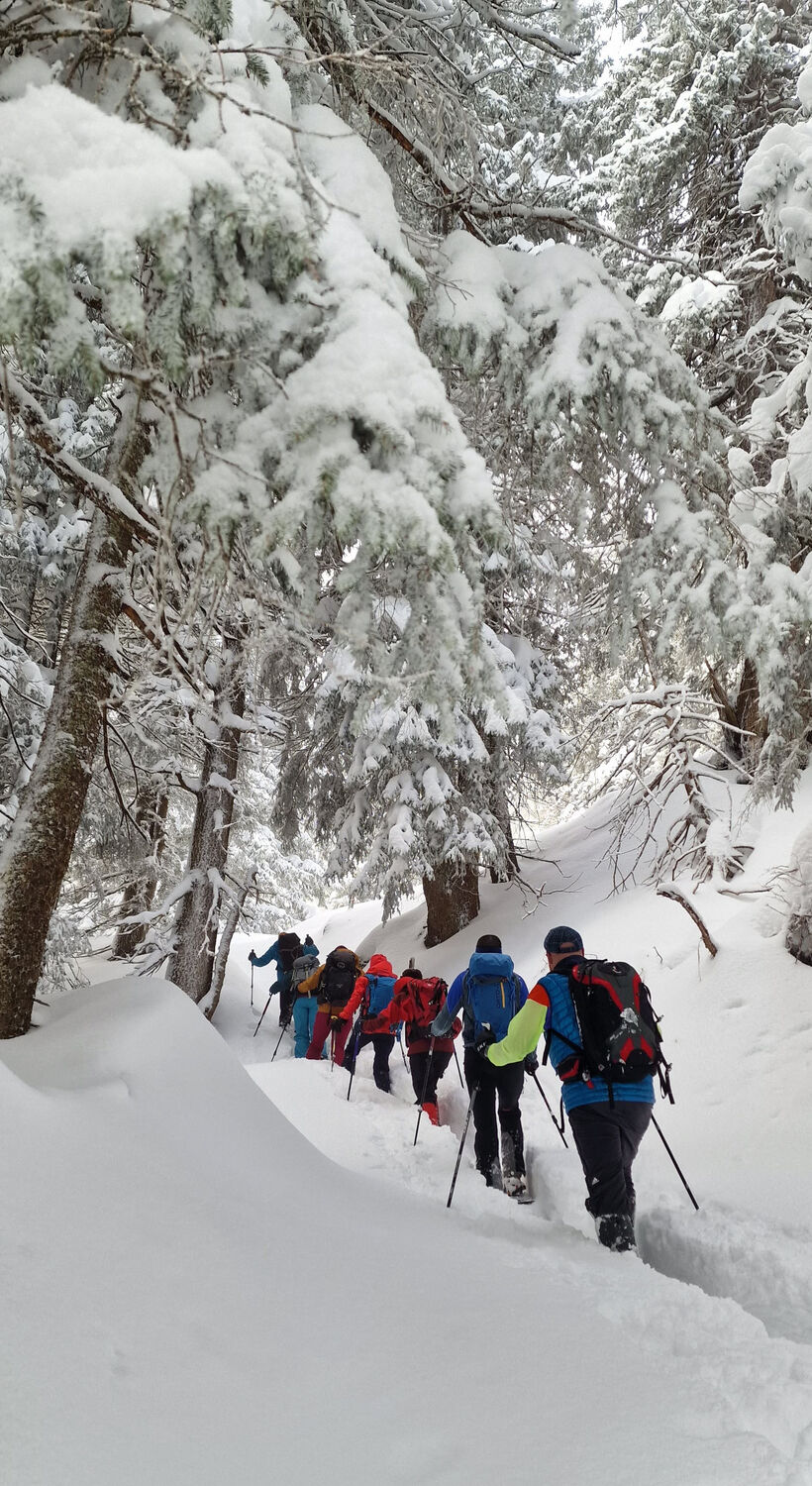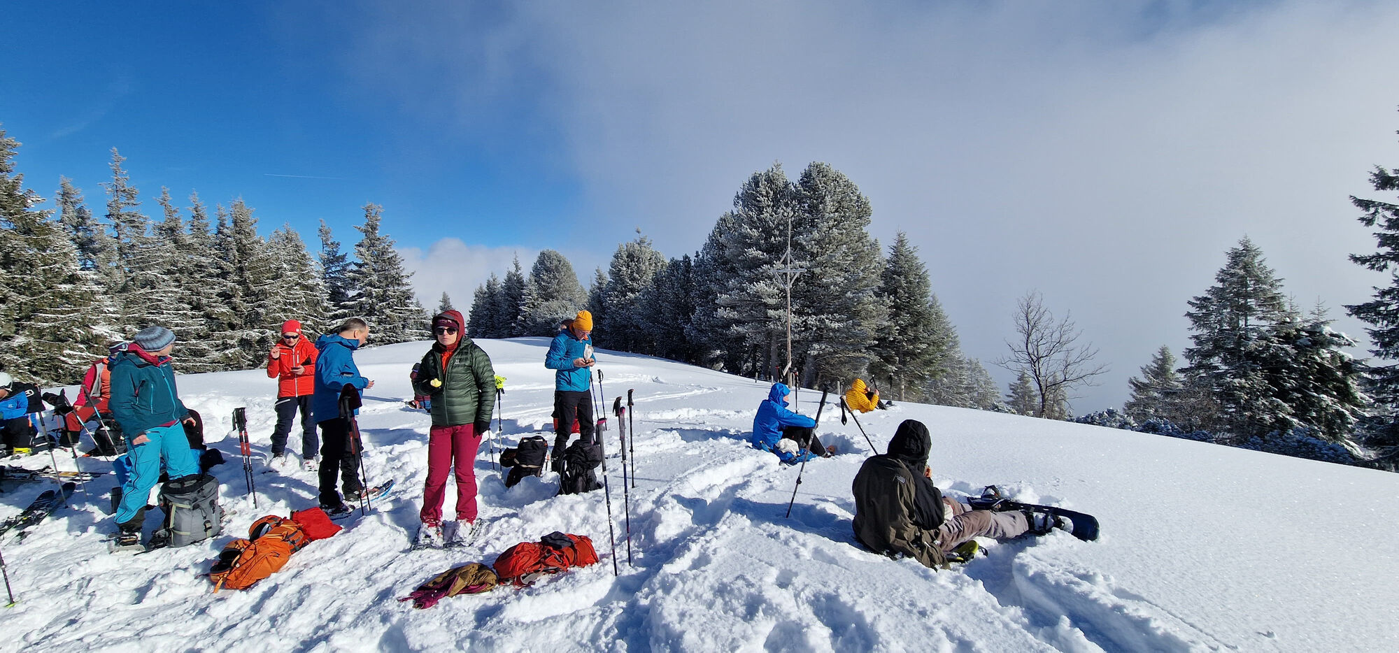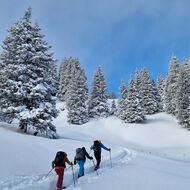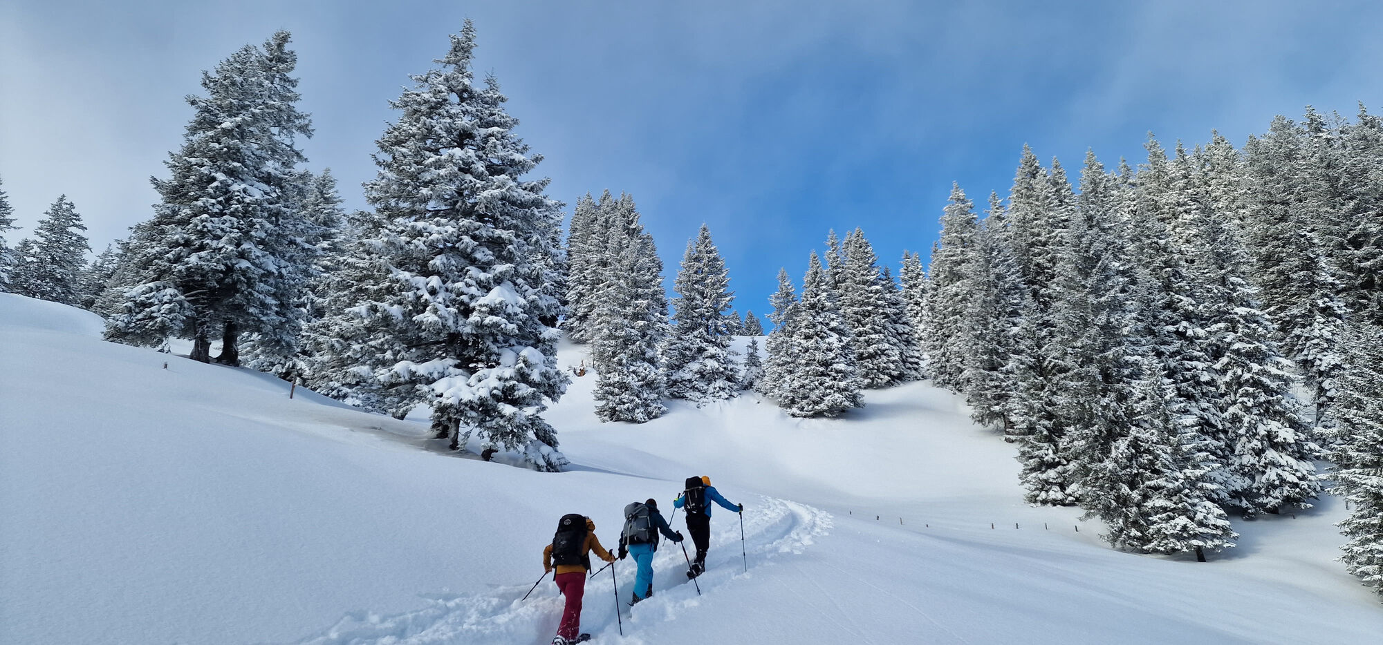 Eine stattliche Gruppe machte sich am Sonntagfrüh auf den Weg nach Langis auf. Wie oft war der Zug ab Luzern Richtung Sarnen gut besetzt. Auch im Postauto waren wir nicht alleine. Bei nebligem und kühlen Wetter machten wir uns zum Abstieg zur Ochsenalp auf, um dann via Münchenboden zum Mettlenbüel aufzusteigen. Vor uns waren einige Skitourenläufer unterwegs, welche im Neuschnee eine praktische Spur legten. Trotzdem kam es im letzten Abschnitt immer wieder zu Einbrüchen im weichen Untergrund. Unterdessen zeigte sich zeitweise die Sonne, zum guten Glück auch während der Mittagsrast auf dem Selispitz. Zurück im Mettlenbüel zielte die Route Richtung Riedmattstock. Kein beliebtes Ziel für Skitourengänger. So war keine Spur in diese Richtung gelegt. Also mussten wir uns selber durch den teilweise ein Meter tiefen Neuschnee kämpfen. Kein Wunder handelten wir uns so einen Rückstand auf die Marschtabelle ein. So entschlossen wir uns, beim Gipfelkreuz des Riedmattstocks umzukehren und auf demselben Weg Richtung Startpunkt zurück zu marschieren und auf die Umrundung des Schiessplatzes zu verzichten. Der Abstieg zur Ochsenalp machte im weichen Neuschnee richtig Spass. Zurück im Langis hatten wir genügend Zeit, um ein Zvieri im Restaurant zu geniessen, bevor wir uns mit Postauto und Zug auf den Heimweg machten.