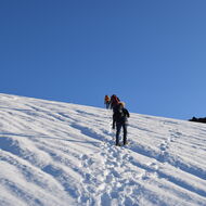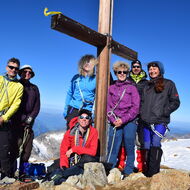 Bei recht guten Bedingungen und Schnee bis zum Gipfel standen wir wie schon 2016 nach wieder beinahe rekordverdächtigen 4¼ Stunden inklusive Pausen auf 3503 m am Gipfelkreuz.