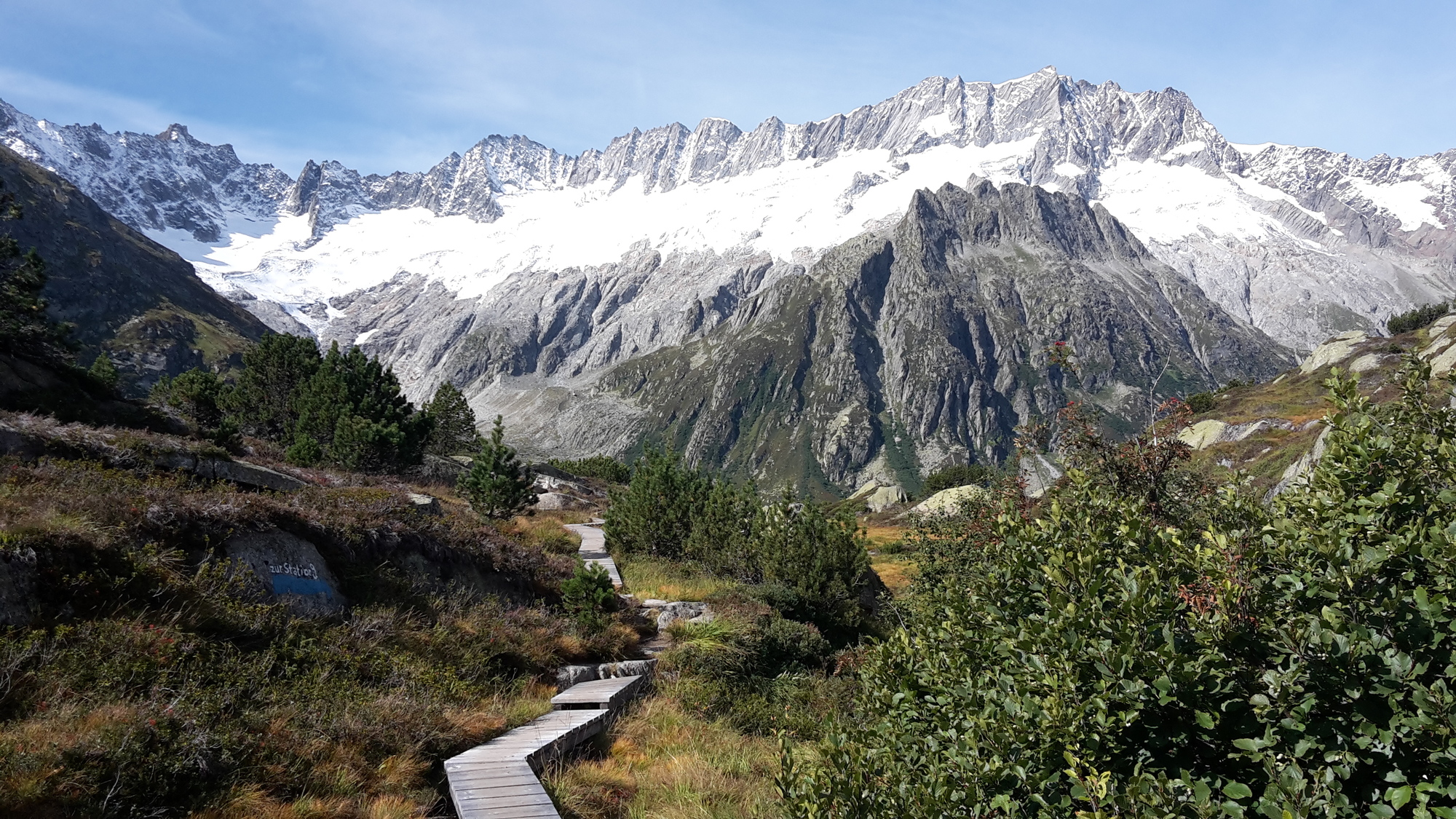 In der Regel erfolgt am ersten Tag der Aufstieg zur Sektionshütte über den Gletscherweg. Aufgrund der sehr guten Witterung, der ausreichenden Zeitreserve und Anregungen von Teilnehmern wurde die Variante via Bergseehütte und Mur gewählt. Auf diesem Zustieg hat man einen schönen Blick in das Chelenalptal sowie in die gegenüberliegende Dammastockgruppe. Später werden noch Gwächtenhorn, Brunnifirn und Sustenlimi sichtbar. Zum Schluss erfolgt der Abstieg zur Chelenalphütte. Auf diese Weise sahen wir den Beginn des Aufstiegs, welcher am nächsten Tag bei Dunkelheit begangen wird, bei Tageslicht. Diese Variante über die Mur ist etwa eine Stunde länger als diejenige via Gletscherweg.